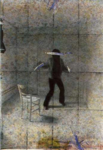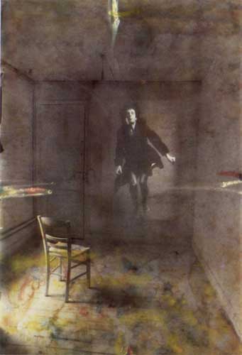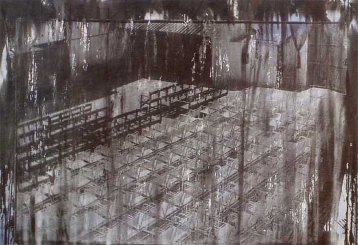1978 122x168cm photo-sensitive canvas and turpentine wash“Chairs-Pollensa Cloister”