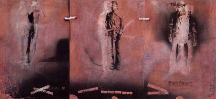 1977 120x80cm photo-sensitive canvas and acrylic paint “Two Panel Self-Portrait”