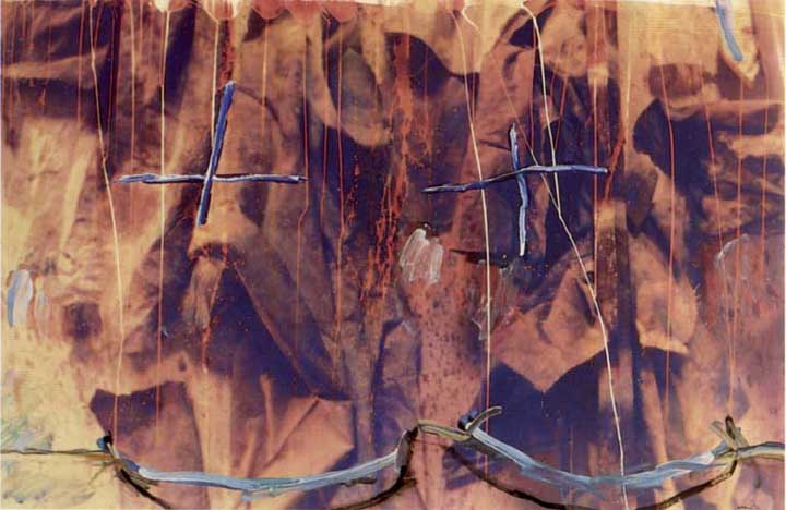 1978 122x168cm photo sensitive canvas with turpentine washes “My Parents on the Beach in Mazatlan in the Forties”