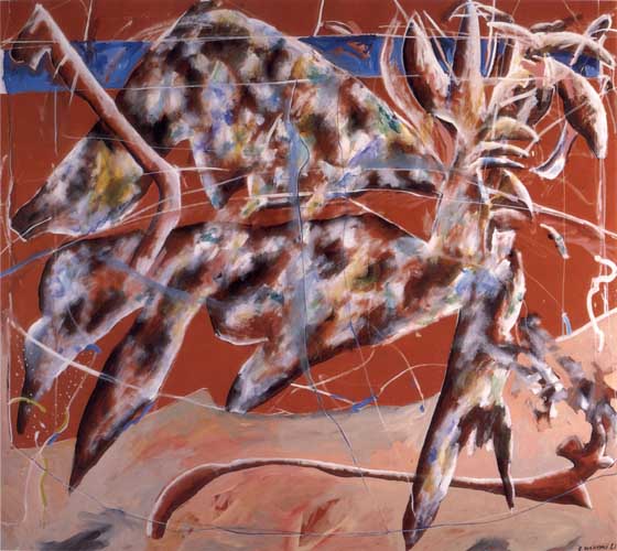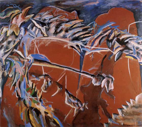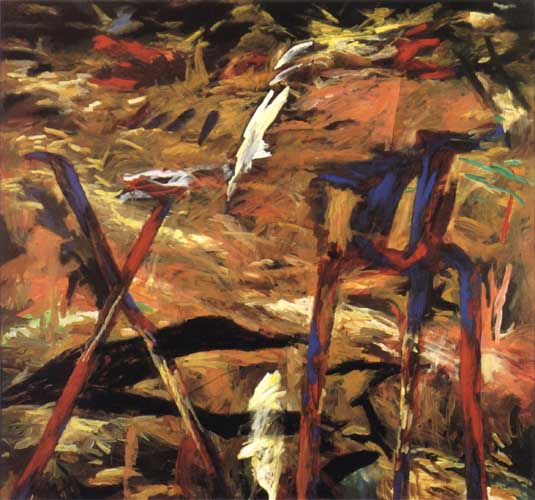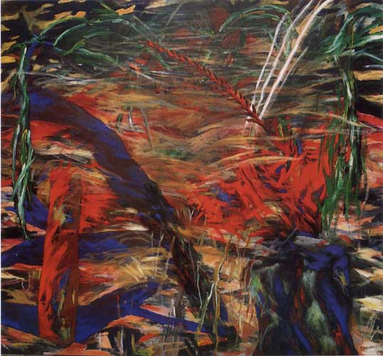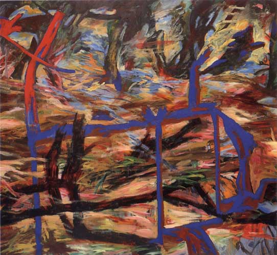 From this time on, until the end of the eighties, my paintings were intense, violent and colorful, navigating between the edges of realism and abstraction. Landscape remained a definite leitmotif. The images were accessible in terms of recognition, and they were clearly also about visual grammar.