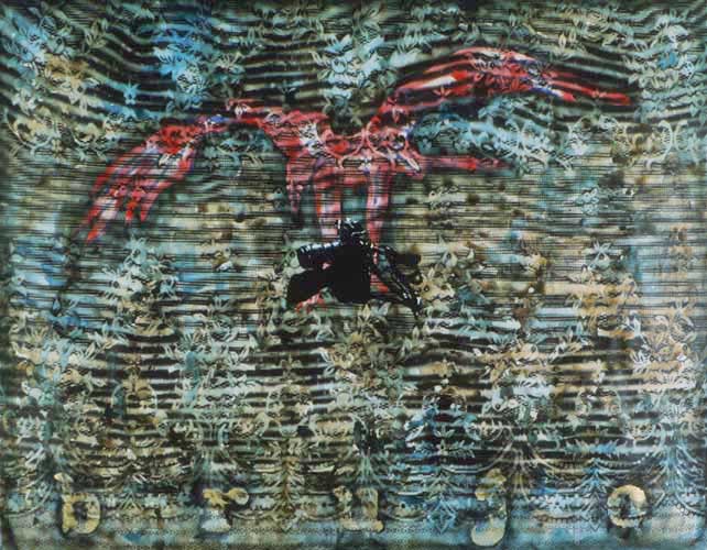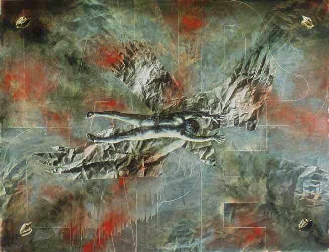 1997 130x160cm acrylic on canvas and photo transfer“Brujo Icarus”