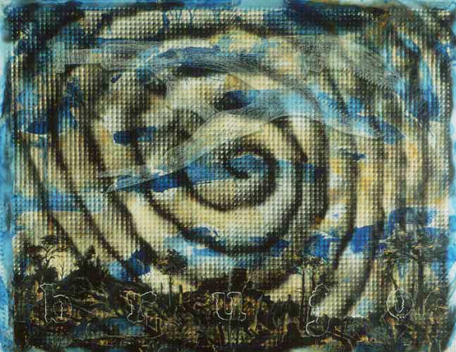 1997 130x160cm acrylic on canvas and photo transfer“Magic Spiral”