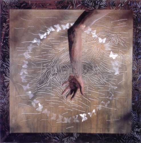 2001 160x200cm acrylic and oil on canvas“Hand of God”