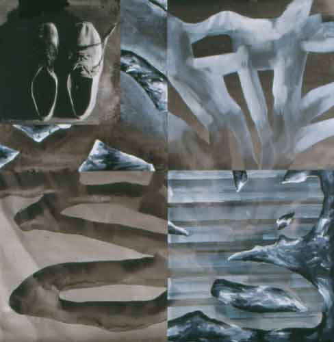 1997 200x160cm acrylic and photographic gel transfer on canvas “Shoes:Cut-Out”