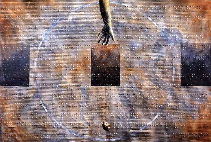 1995 131x196cm acrylic on canvas“Concert in Braille”