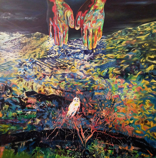 “Hands Owl Mycenea Landscape”
