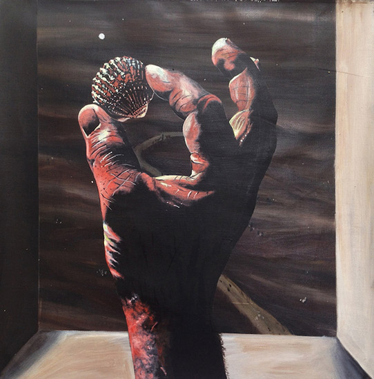 “Hand holding shell ΙΙ” 2015 40cm x 40cm oil on canvas“Hand holding shell”