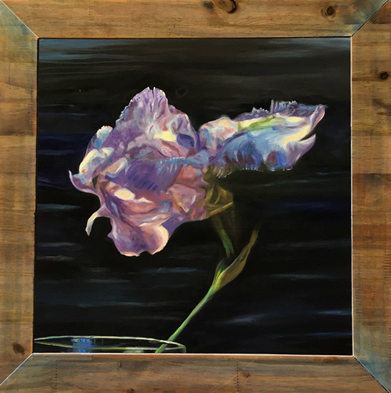 “Purple Iris in floating glass”